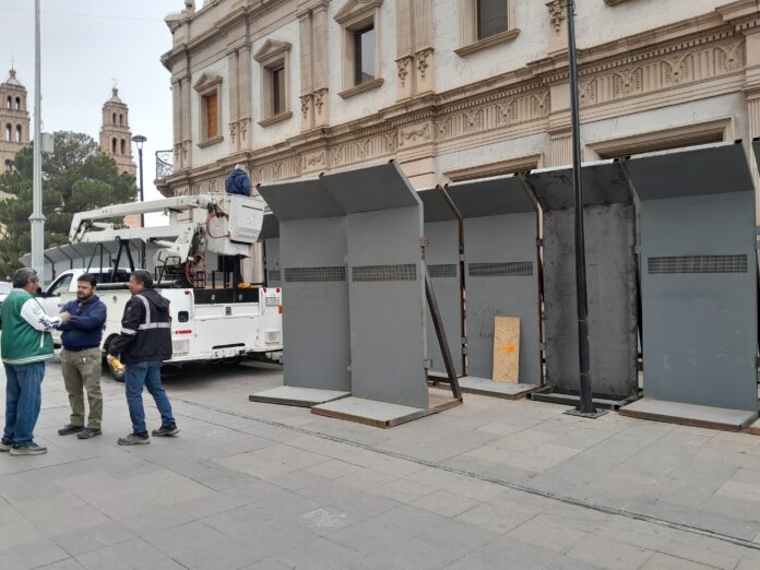 Este lunes 9 de marzo iniciaron las labores para retirar las estructuras de protección colocadas en el edificio de la Presidencia Municipal de Chihuahua y otros inmuebles del primer cuadro de la ciudad, luego de la movilización realizada el domingo con motivo del Día Internacional de la Mujer.