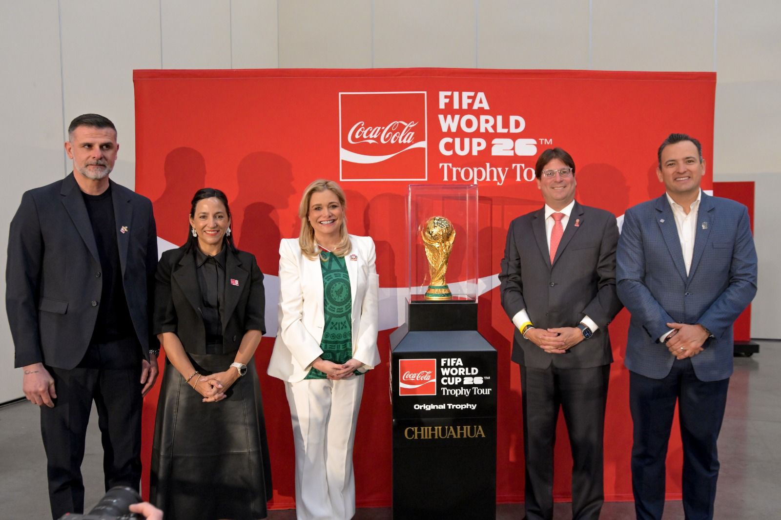 La gobernadora Maru Campos en conjunto con Arca Continental y Coca-Cola México dio la bienvenida a la capital del estado al Trofeo de la Copa Mundial de la FIFA 2026, presentado por Coca-Cola en ceremonia realizada en el Centro de Convenciones Expo Chihuahua.