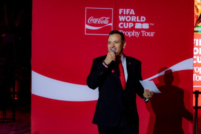 El alcalde capitalino, Marco Bonilla, agradeció a Jose Borda, de Arca Continental; Mariana Torregitar de Cocacola Company; Edibray Gomez secretario de Turismo del Estado en representación de la gobernadora Maru Campos y Vichenzo Laquinta, jugador FIFA; por haber hecho realidad el sueño de tener la Copa de Mundo en Chihuahua Capital.