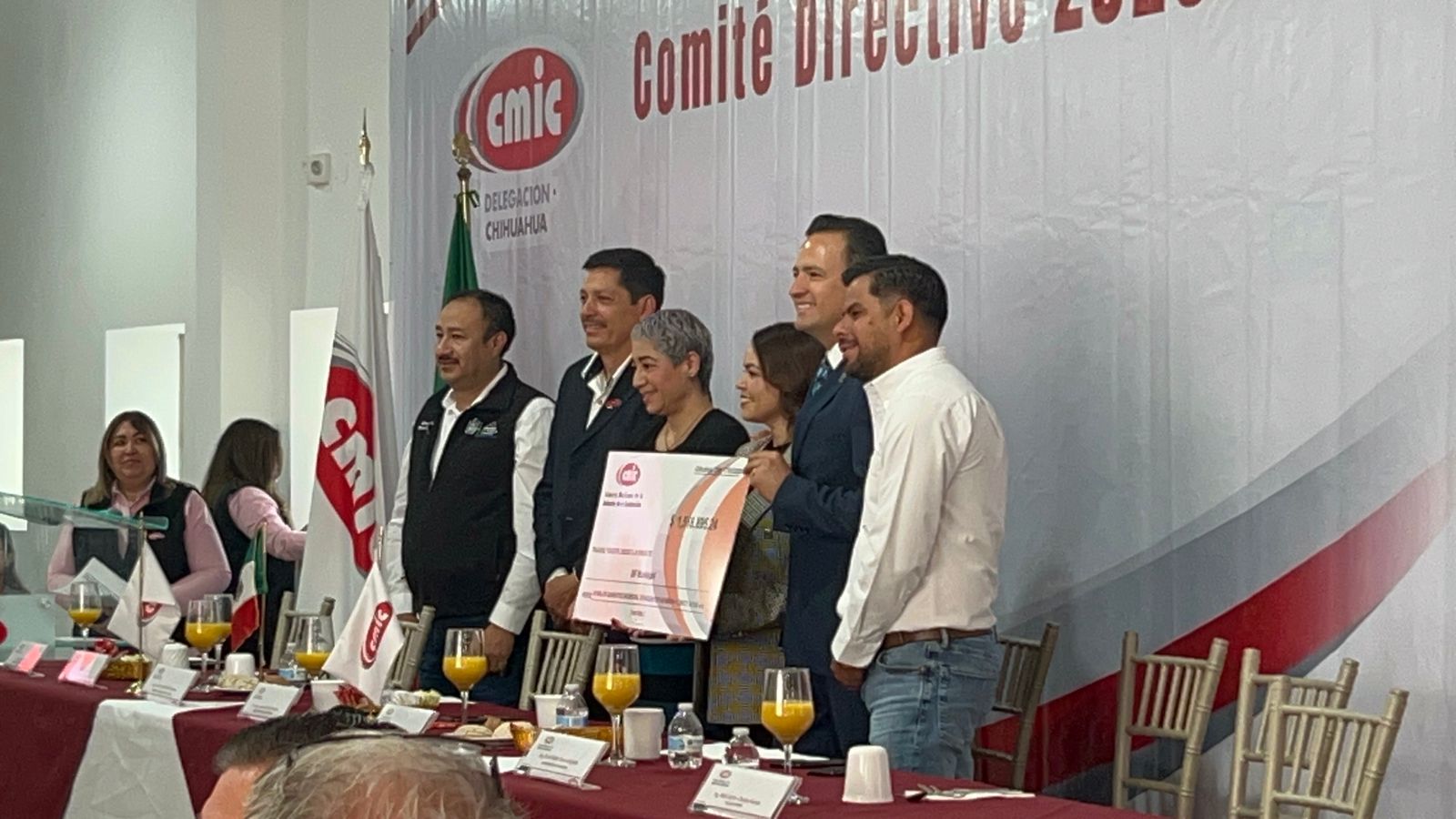 En el marco del evento, la presidenta del DIF Municipal, Karina Olivas, recibió el donativo de un millón 500 mil pesos por parte de la CMIC, recurso que será destinado a acciones de apoyo social, como parte de la colaboración entre el sector privado y el gobierno municipal.