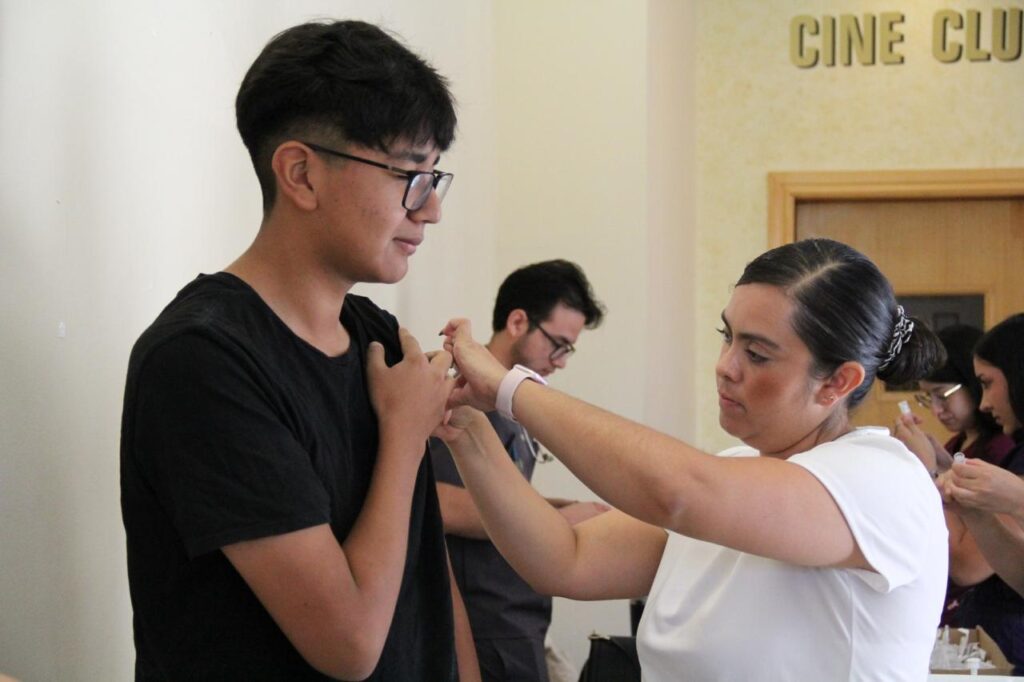 La actividad se está llevando a cabo en el vestíbulo del Cineclub de la facultad, donde personal médico y de enfermería brindan atención a estudiantes, docentes y personal administrativo interesado en aplicarse la vacuna.