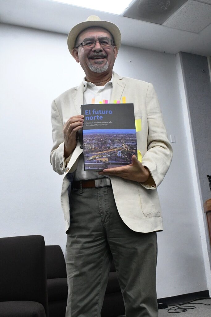 El escritor Luis Eduardo Ibáñez Hernández presentó en la Universidad Tecnológica de Ciudad Juárez (UTCJ) su libro “El Futuro Norte”, en el que se plasma la historia económica de esta localidad con el objetivo de comprender el desarrollo de la frontera y qué es lo que viene.