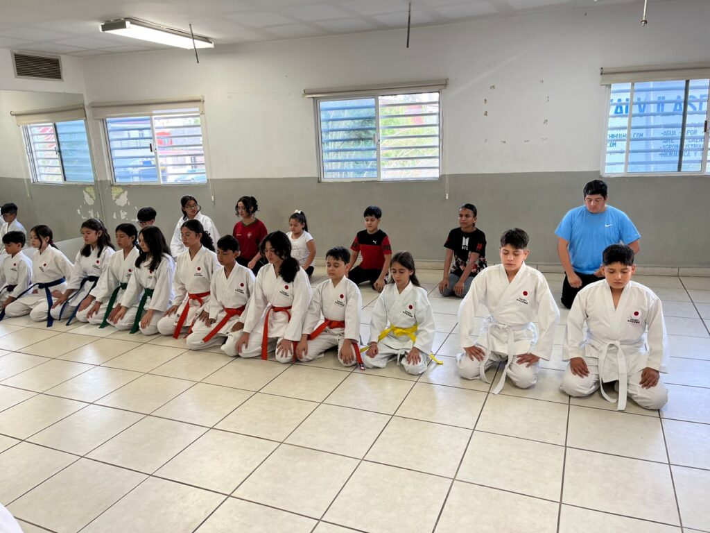 Chihuahua, Chih.- En un gesto de apoyo y cercanía con la comunidad, el regidor del H. Ayuntamiento del Municipio de Chihuahua Adán Galicia [PAN] asistió a un entrenamiento de karate con los deportistas del Centro Comunitario Insurgentes.