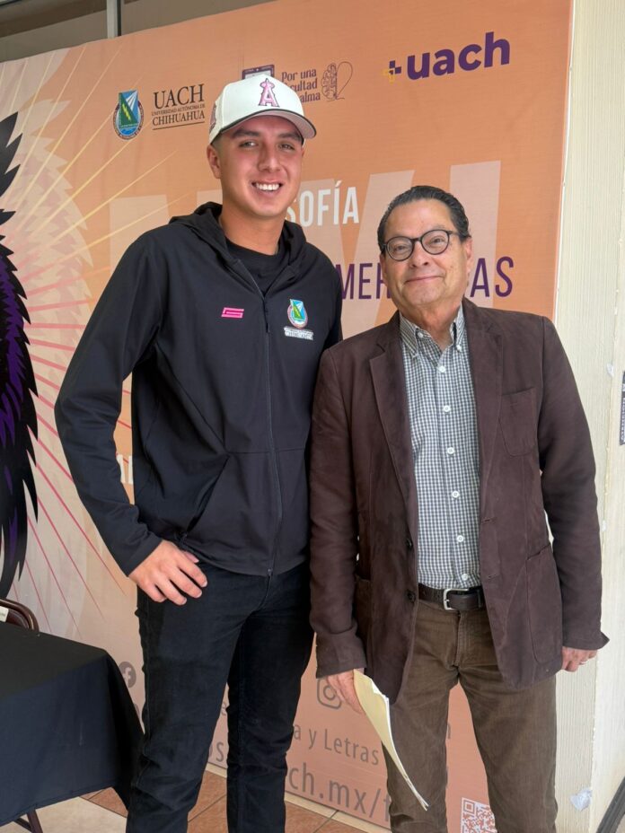 Chihuahua.- La Facultad de Filosofía y Letras de la Universidad Autónoma de Chihuahua reconoce la trayectoria de Rodrigo Armendáriz Medina, estudiante de la Licenciatura en Administración de la Información y miembro del equipo representativo de béisbol de la UACH, quien ha logrado equilibrar con éxito su formación académica y su desempeño deportivo.