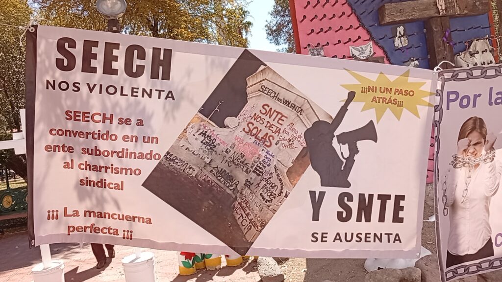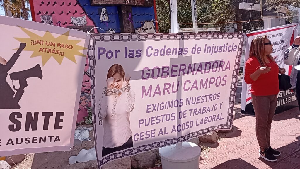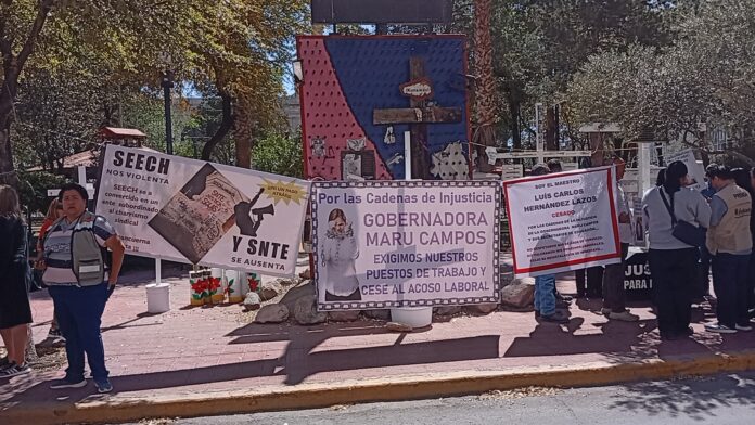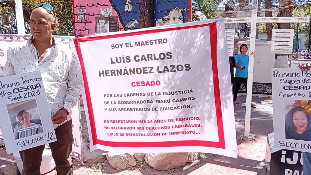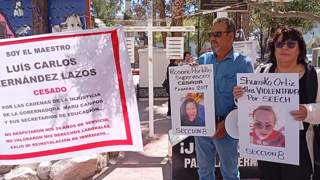 “Aquí están los 14 docentes cesados y violentados. ¿Cuál protección tienen los maestros en Chihuahua? Son puras mentiras”, afirmaron.