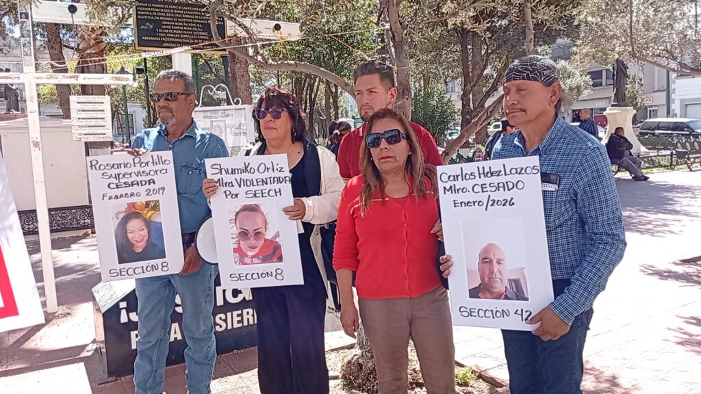 Los docentes, pertenecientes a las Secciones 8 y 42 del SNTE, señalaron que entre los afectados se encuentran, entre otros, Luis Carlos Hernández Lazos, José Manuel Rubio, Adriana Terrazas Mesa y Brenda Pérez, quienes —aseguran— han sido separados de su trabajo o han enfrentado omisiones institucionales sin que sus demandas hayan sido atendidas.