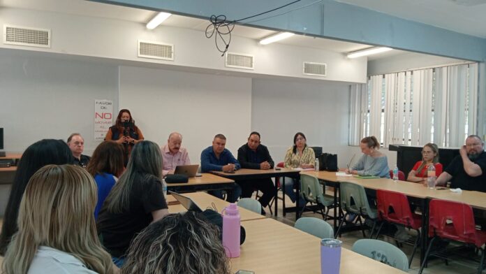 Luego de la toma del plantel registrada la mañana de este martes, docentes de la Secundaria Federal 5 de Chihuahua sostuvieron una reunión de cerca de cuatro horas con autoridades de SEECH, tanto del área sindical como administrativa, que derivó en acuerdos para atender de manera inmediata diversas problemáticas, comenzando por la falta de agua en la institución.