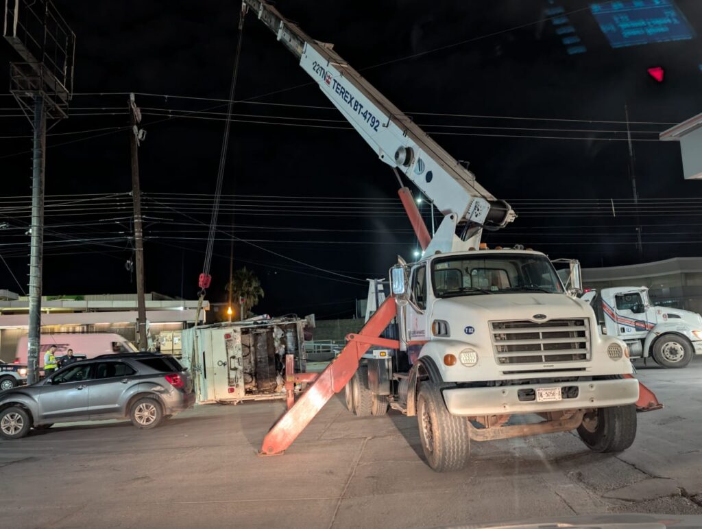 Chihuahua, Chih.- Gobierno Municipal, a través de la Dirección de Servicios Públicos Municipales, informa sobre el incidente que ocurrió la tarde del lunes 8 de septiembre, donde un camión recolector se volcó mientras era remolcado por una grúa y, en las maniobras, el peso del mismo vehículo provocó el accidente.